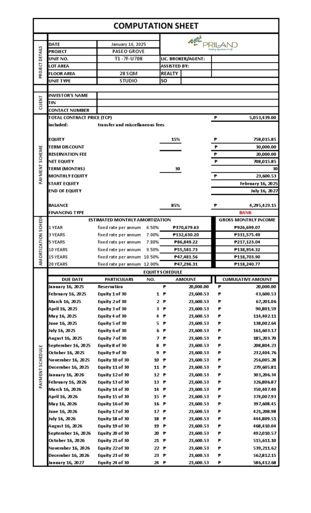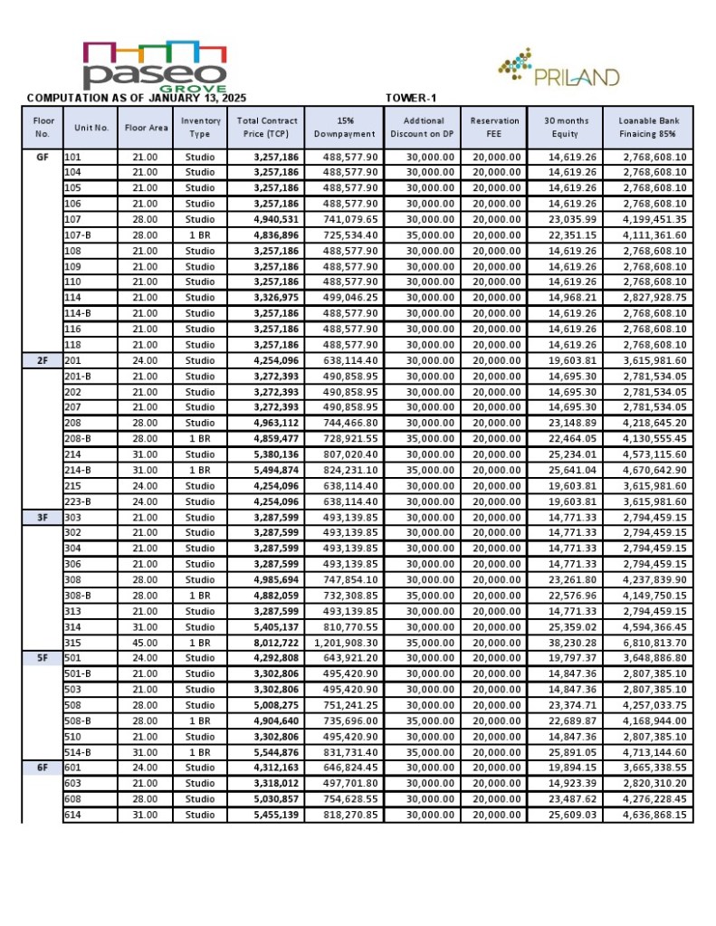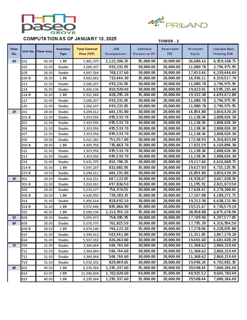 Paseo Grove Mactan condominium is the newest project by Priland Development Corp. Literally just a few short meters from MEPZ II (Tamiya Basak) a quick drive to the Mactan Airport and five star beach resorts, Paseo Grove is your new home in Lapu-Lapu City. Video Walk Thru