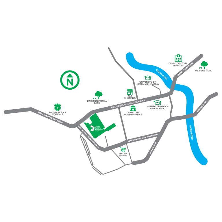 The township is strategically located in the former Matina Golf Club along MacArthur Hi-way in the Southern District of Davao City