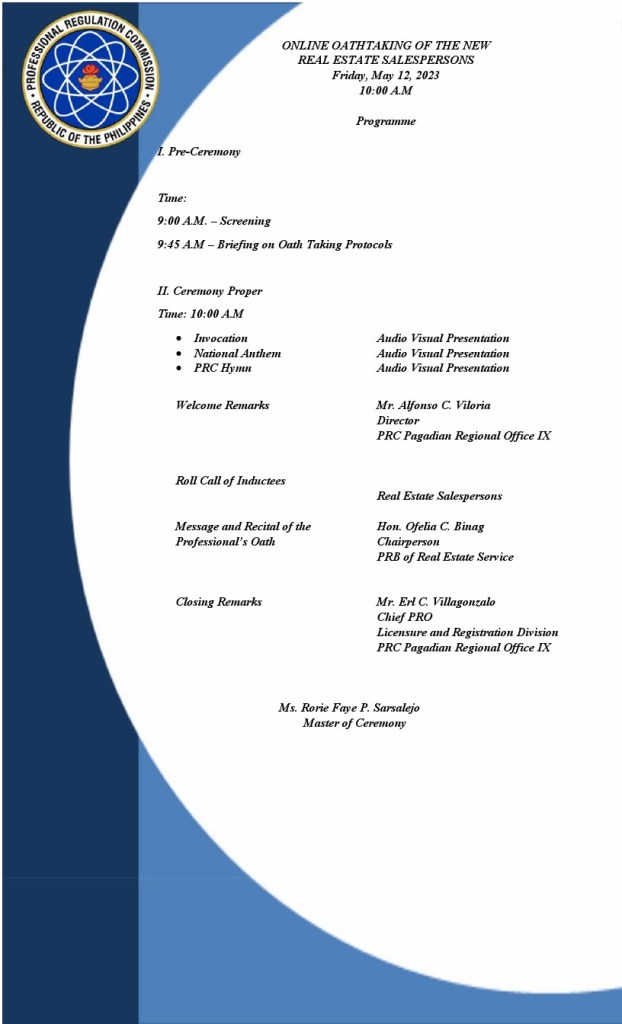 PRC ONLINE OATH TAKING FOR REAL ESTATE SALESPERSON