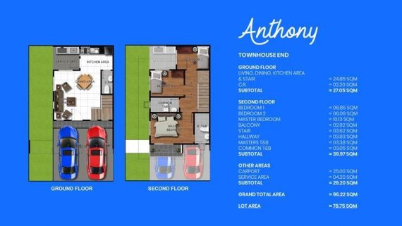 | Total Lot Area: | 78.75 SQM – 123.1 SQM |