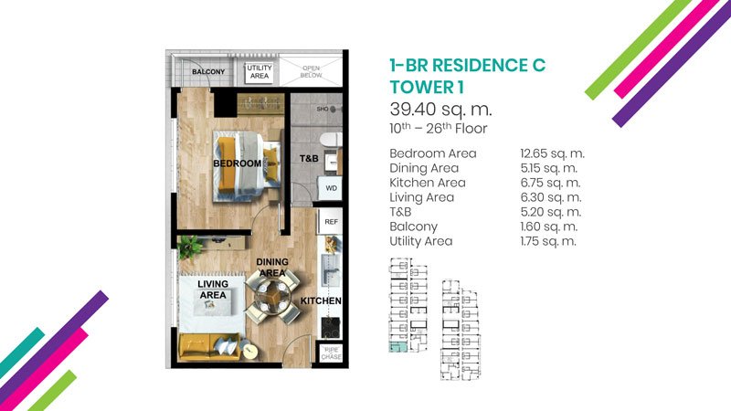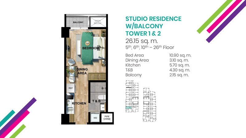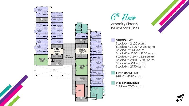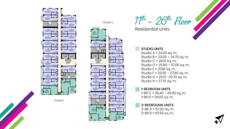 Discover an assortment of unit types thoughtfully arranged on every floor. The selection includes studio, 1-bedroom, 2-bedroom, and penthouse units, all of which can be customized according to personal preferences and utilized as either a residence or a small office/home office (SOHO) unit.