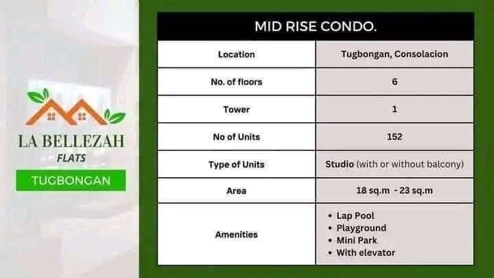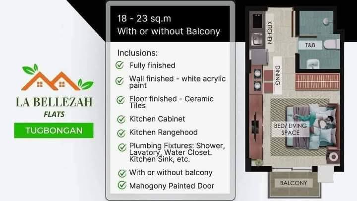 La Bellezah Flats, a new pre-selling residential project located in Tugbongan, Consolacion, Cebu. It offers thoughtfully designed units that cater to individuals, young professionals, and growing families seeking a comfortable and stylish living space without breaking the bank. With its strategic location and attractive price points, this project is an excellent opportunity for homebuyers and investors alike.