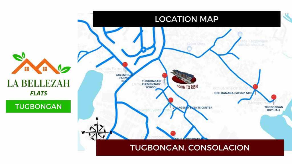 La Bellezah Flats is located in Tugbongan, Consolacion Cebu. To get there from Cebu City, you can travel by private vehicle, public jeepney or bus, or by taxi. If you’re driving a private vehicle, take the Cebu North Road (Mandaue-Cebu Highway) heading northbound. Pass through Mandaue City and continue along the main highway toward Consolacion. Look for signage for Tugbongan, which is located near the town center of Consolacion. The drive typically takes around 20 to 30 minutes, depending on traffic conditions.