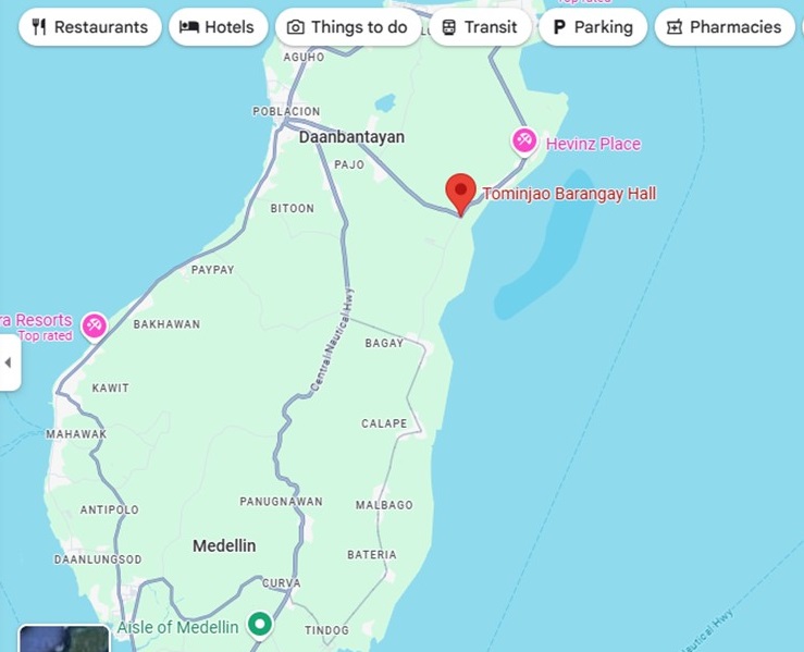 - Once in Daanbantayan proper, you can take a tricycle or private vehicle to Barangay Tominjao, just 15-20 minutes away.
