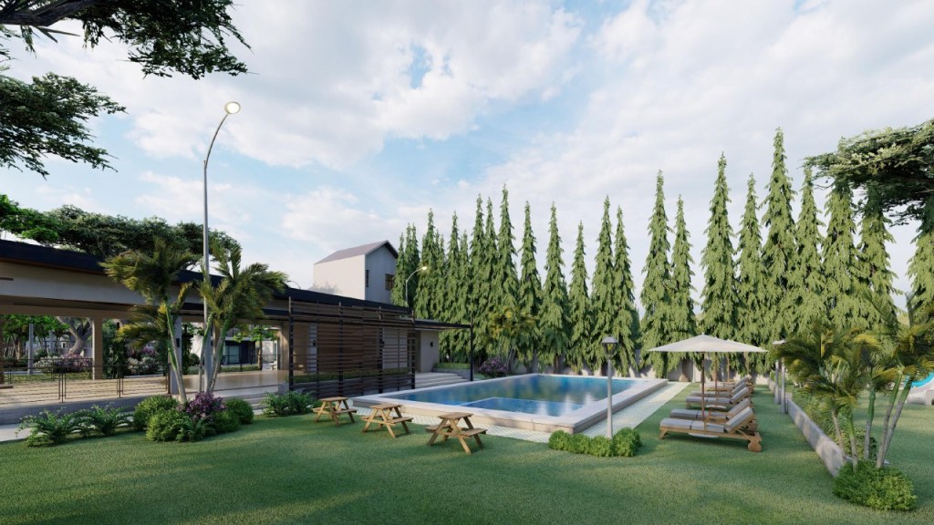 - Swimming Pool: A serene pool area surrounded by greenery for relaxation.