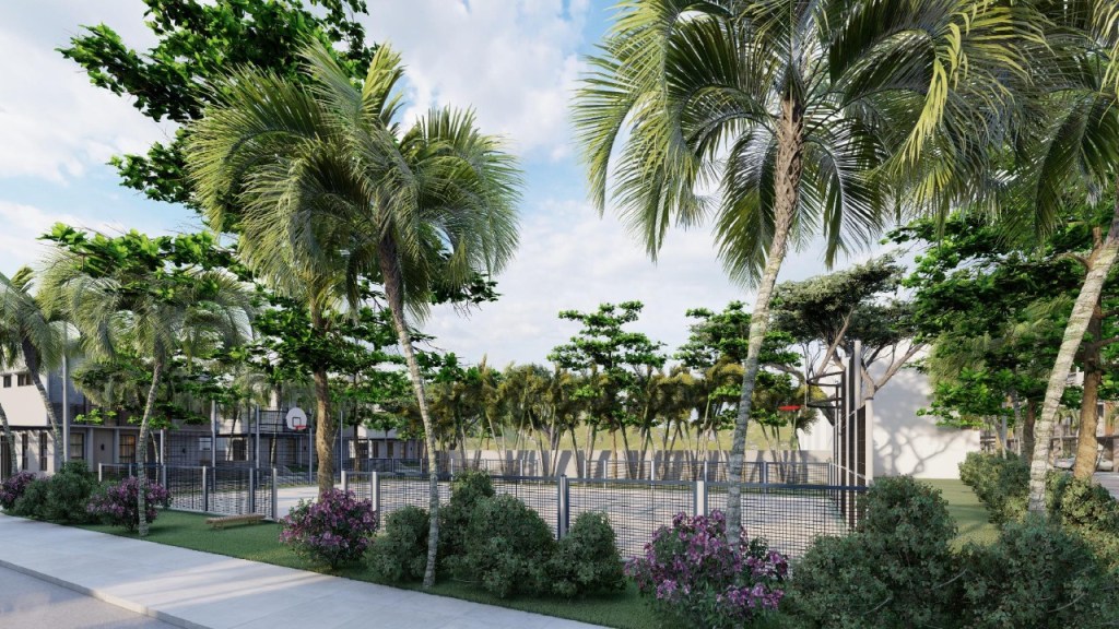 - Basketball/Playcourt: A lush basketball court providing a space for sports and relaxation.