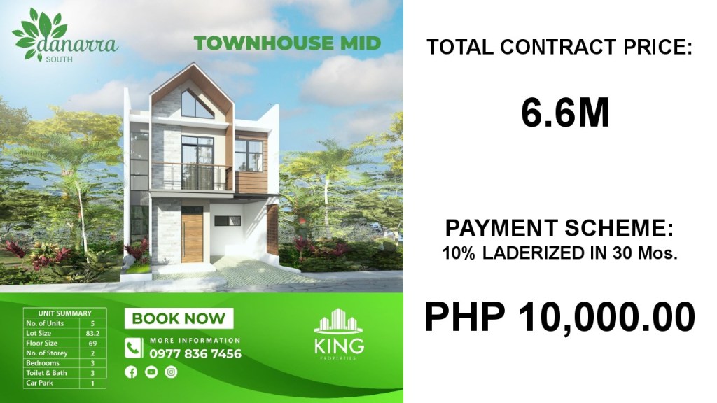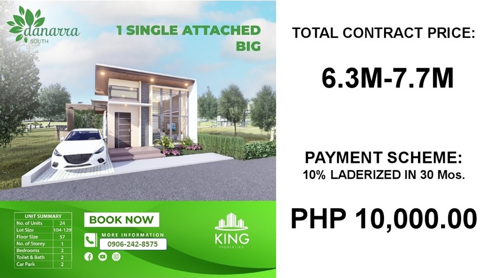 Danarra South is a contemporary residential development by King Properties, situated in Sitio Primitiva, Barangay Tungkop, Minglanilla, Cebu. Launched in June 2023, this 2.5-hectare project offers 123 housing units, including townhouses, duplexes, single detached, single attached homes, and shophouses. The development emphasizes sustainability, featuring eco-friendly amenities such as solar panels, solar streetlights, and rainwater catchments.