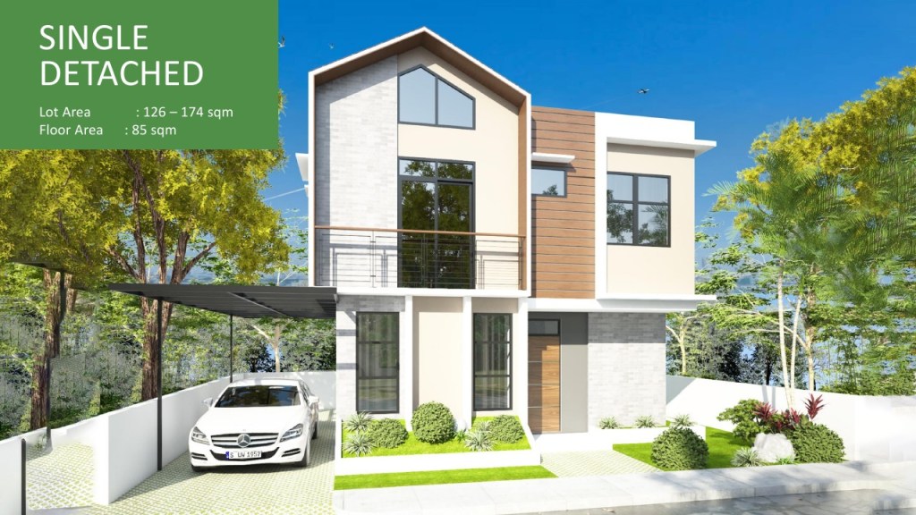 - Sienna (Single Detached): Two-storey with 5 bedrooms, 3 toilets and baths, living and dining area, kitchen, pantry, balcony, and a tandem parking slot for 2 vehicles. Lot area: 126-174 sqm; Floor area: 81.80 sqm.