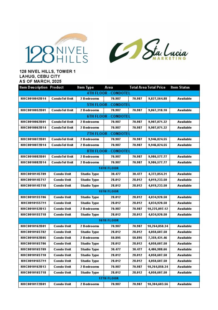 128 NIVEL HILLS CONDO & CONDOTEL By Sta. Lucia Land